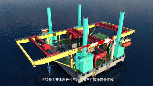 A、中长周期波涌浪海域自升式碎石桩施工平台